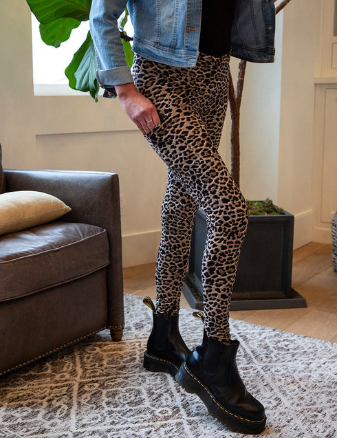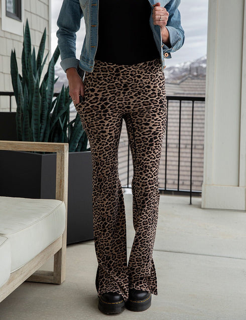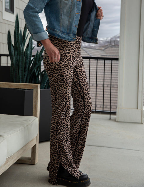 SA Sassy Tan Leopard Cross Waistband Pocket Flare Leggings