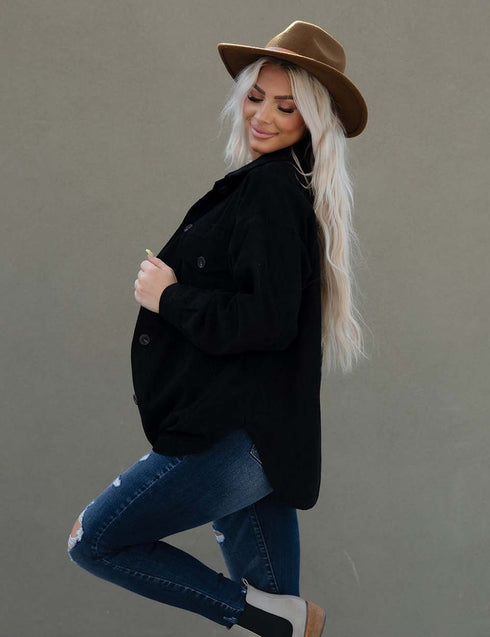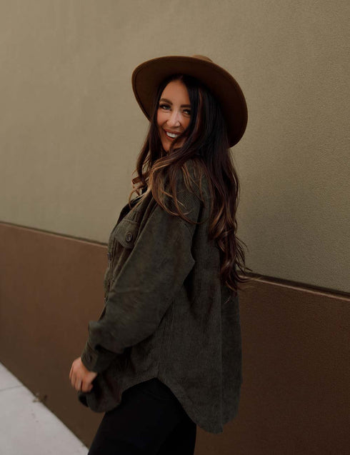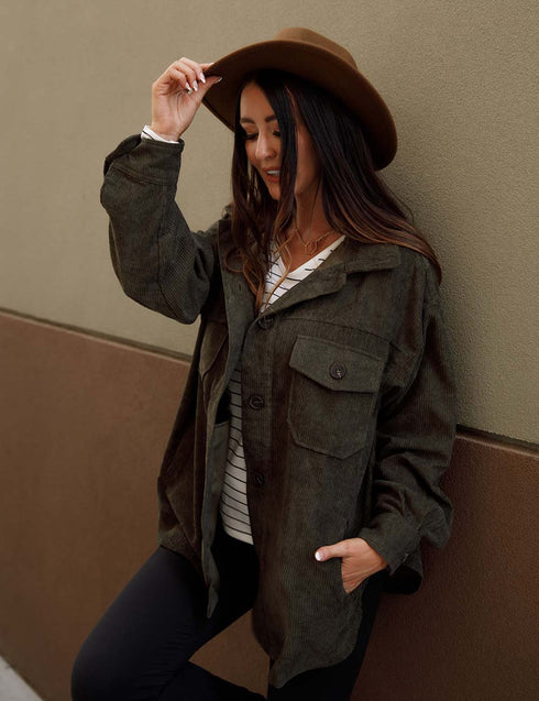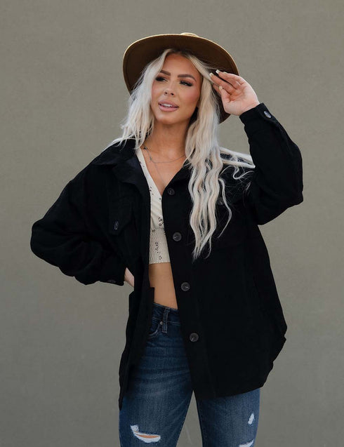 Attention Ladies-Here is the wardrobe staple you’ve all been waiting for! The Corduroy Love Jacket is the casual yet classy oversized button up jacket that we all need. The jacket features front pockets, functional buttons, 4 color options and pockets on the sides. Model is wearing a Small.