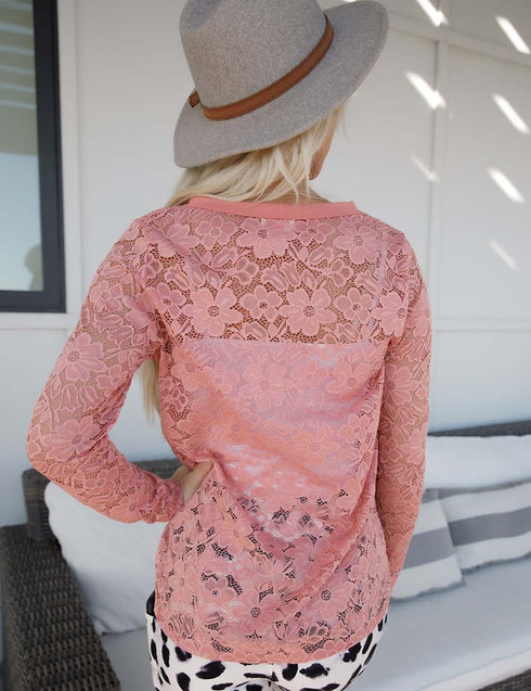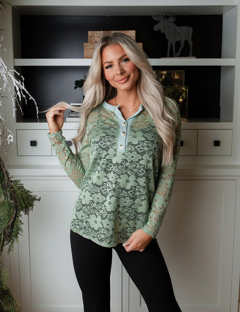 We are HERE for this lovely lace top! The flower pattern is big and beautiful yet delicate which makes this top a standout piece. The solid neckline has functional buttons. You will shine bright when wearing this delightful lace top. Model is wearing a Small.