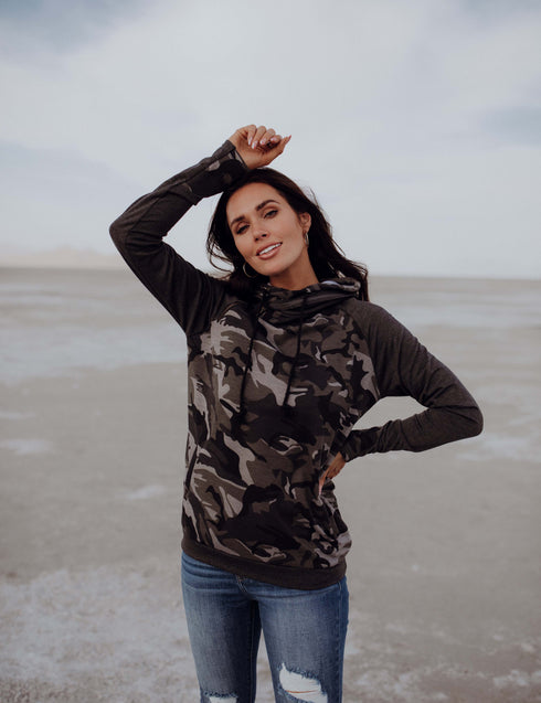 Snuggle up in our new SA Exclusive Double Hooded Sweatshirt! Whether you are going out with the girls or getting cozy on your couch this is the Sweatshirt for you. Featuring a functional double hood with a side zipper and thumb holes.